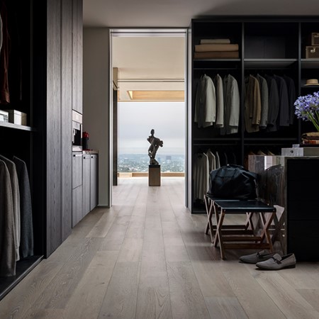 The California Classics Mediterranean 9.5 Alassio offers an ageless antique allure of Mediterranean floors. Artisans begin a meticulous process by hand-selecting fine French Oak, milled into precise planks of 9.5 inches wide and 86.6 inches in length. An unprecedented, signature double smoking technique is then used to age the natural Oak grain and lock in heirloom-caliber colors. Surfaces are then lightly scraped, and edges and ends are carefully hand-carved.