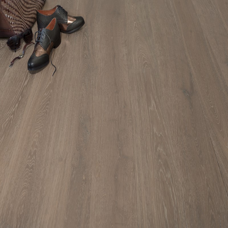 DM Flooring Valaire Nouveau Clermont aged appearance of this wire brushed surface creates a timeless elegance in both plank and parquet. The ability to create French design patterns creates high drama in any space and the naturally aged color tones create upscale sophistication.